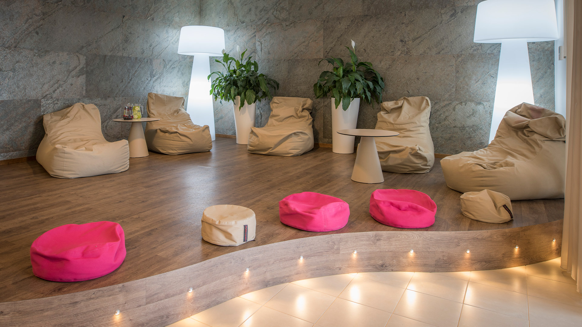 Spa-osastolta löytyy kaksi lämmitettyä divaania, joihin voi helposti kaikkien spa-elämysten jälkeen pysähtyä ihastelemaan poutapilviä tai jopa torkahtaa.