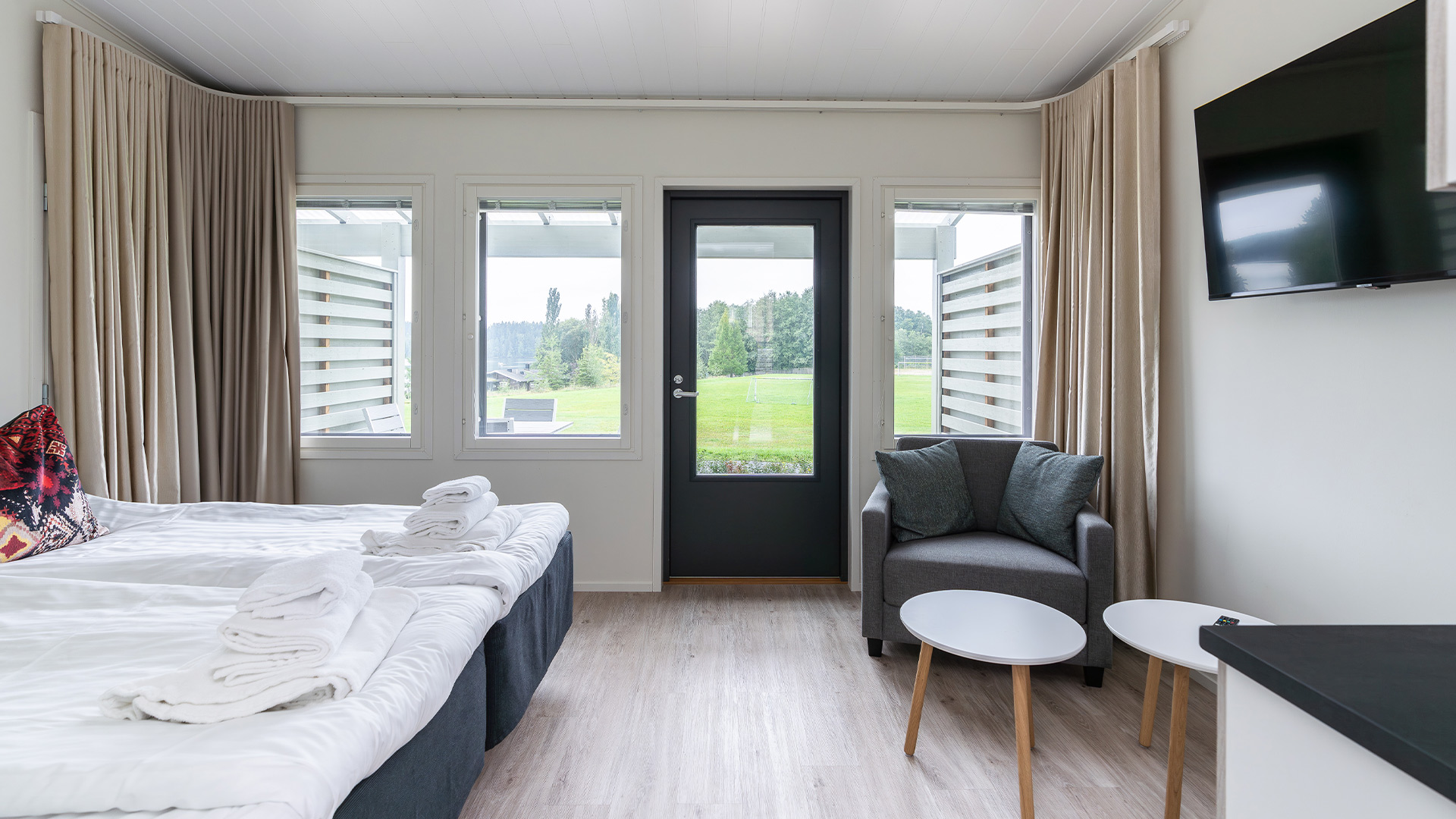 Studio -huoneet sijaitsevat rannan puolella erillisessä rakennuksessa n. 200 metrin päässä päärakennuksesta. Jokaisessa huoneessa on oma sisäänkäynti sekä ikkuna järvelle päin. Huonevarusteluun kuuluu vesipiste, mikro,vedenkeitin, jääkaappi, tv, hiustenkuivain sekä maksuton wi-fi yhteys. Huoneessa on ilmastointi. Huoneessa on 180 cm leveä kingsize vuode ja 1-2 lisävuodetta. Viihtyisissä huoneissa on oma terassi järvinäköalalla. Terasseilla ei ole talvikunnossapitoa.