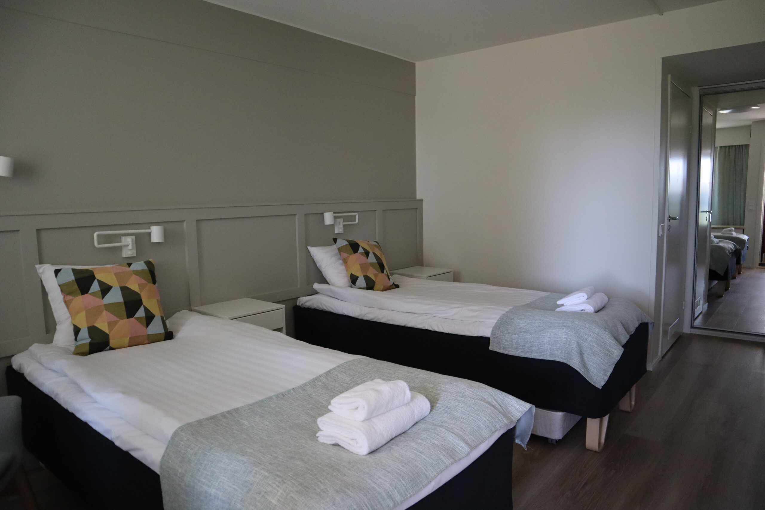 Standard twin huoneet sijaitsevat keskimmäisen rinnetalon alakerrassa, noin 100 metrin päässä päärakennukselta. Huoneen varusteluun kuuluu 2 erillistä sänkyä sekä sängyn alta cedettävä lisävuode. Huoneessa on pieni jääkaappi, hiustenkuivain sekä tv ja maksuton wifi. Huoneessa ei ole ilmastointia.